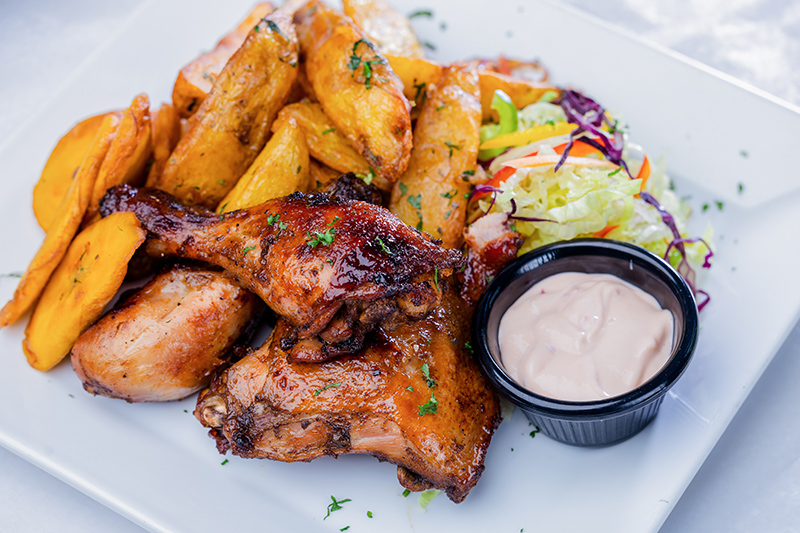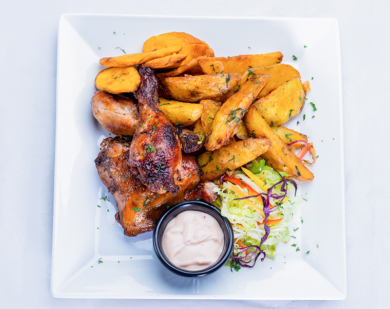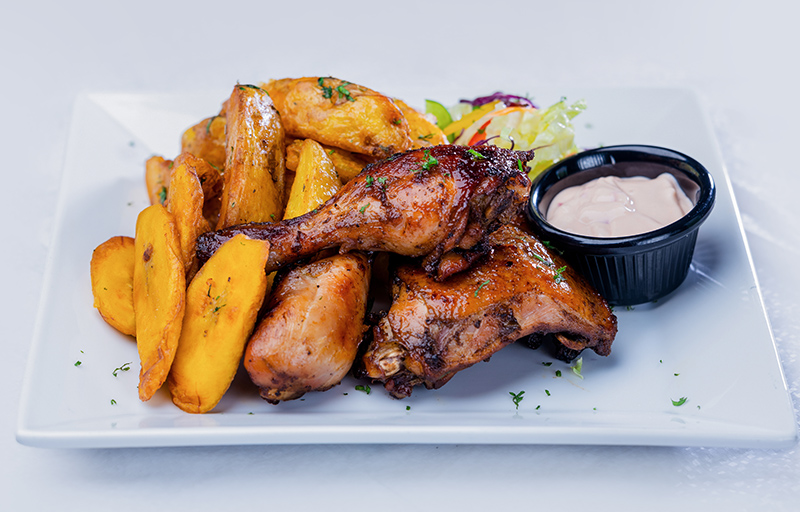 Served with a choice of accompaniment, Gonja, salads, and Thousand Island dressing.