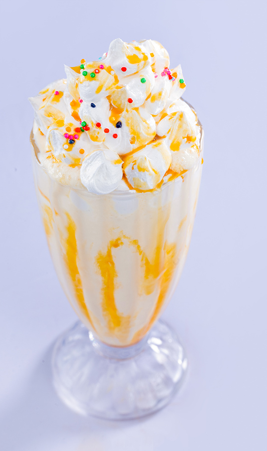 A blend of yoghurt with vanilla ice cream and a garnish of syrup.